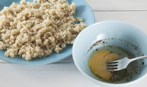 Киноа промойте в холодной воде и отварите до готовности около 15-ти минут, выложите в плоскую тарелку.