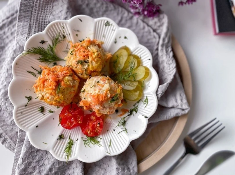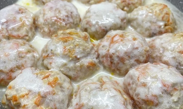 Залейте румяные шарики сметанным соусом. Выложите оставшуюся морковь и накройте крышкой. Томите 10–15 минут.