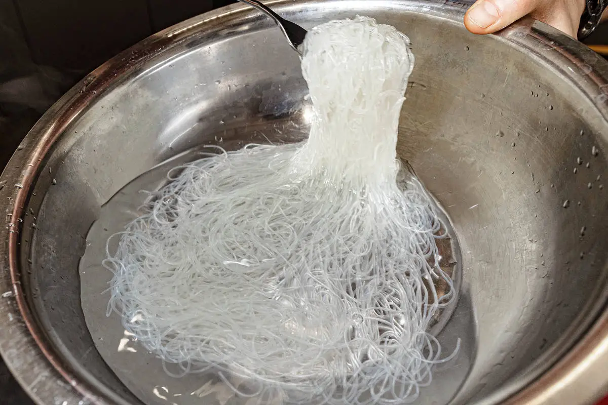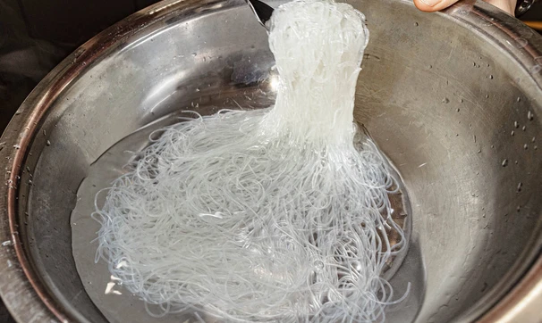 Перед подачей замочите фунчозу в кипятке на несколько минут.