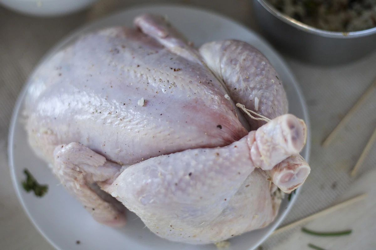 Готовность можно проверить, проколов ножку ножом, если вытекает прозрачный сок, птица готова.