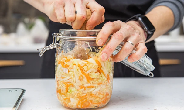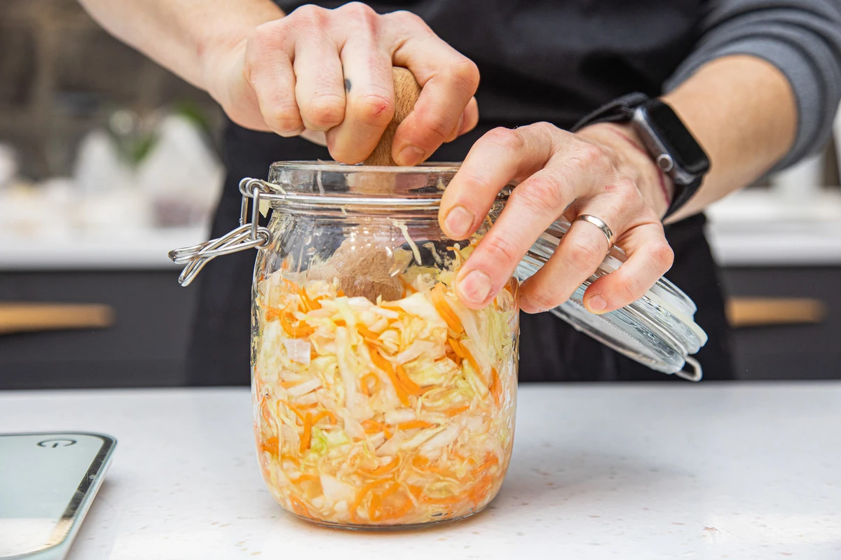 Не знаете, как заквасить капусту? Наш рецепт поможет вам сделать это идеально с первого раза. Главное — соблюдать пропорции и следить за процессом, вовремя «помогая» ему. Из этого количества овощей у вас получится 800-граммовая баночка квашеной капусты.