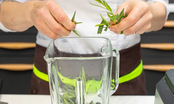 Добавьте листики тархуна, слегка перетерев их в руках.