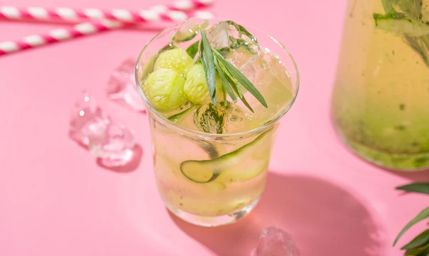 Сам по себе нейтральный огурец придаёт лимонаду особенную свежую нотку. Идеально добавить к сочетанию лимона и огурца зелень тархуна — это очень вкусно.