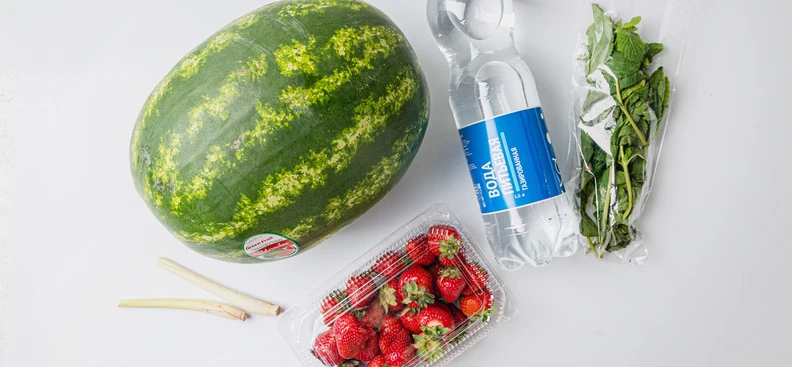 Лимонад с арбузом и клубникой