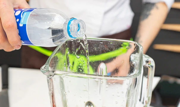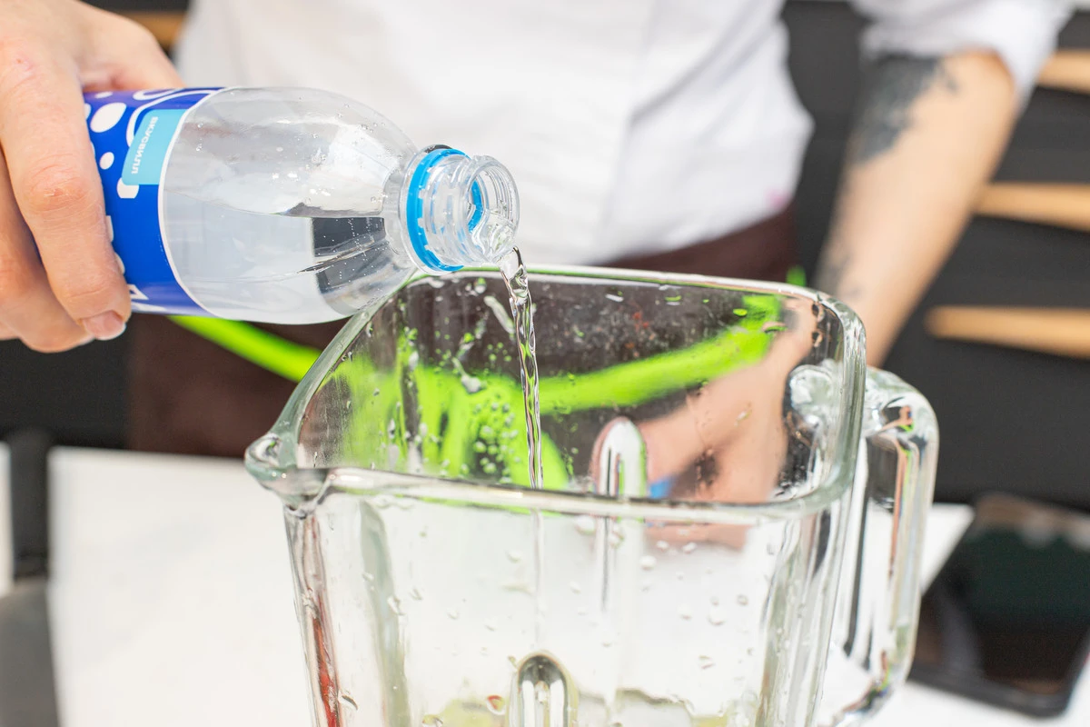 Добавьте воду и пробейте всё вместе в блендере.