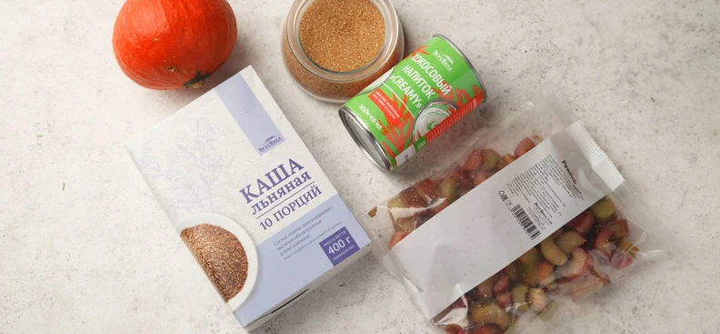 Этим рецептом с нами поделилась покупательница ВкусВилла. Тыкву можно заменить сливой, а ревень даёт кислинку и необычный оттенок вкуса.