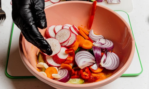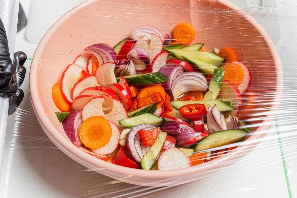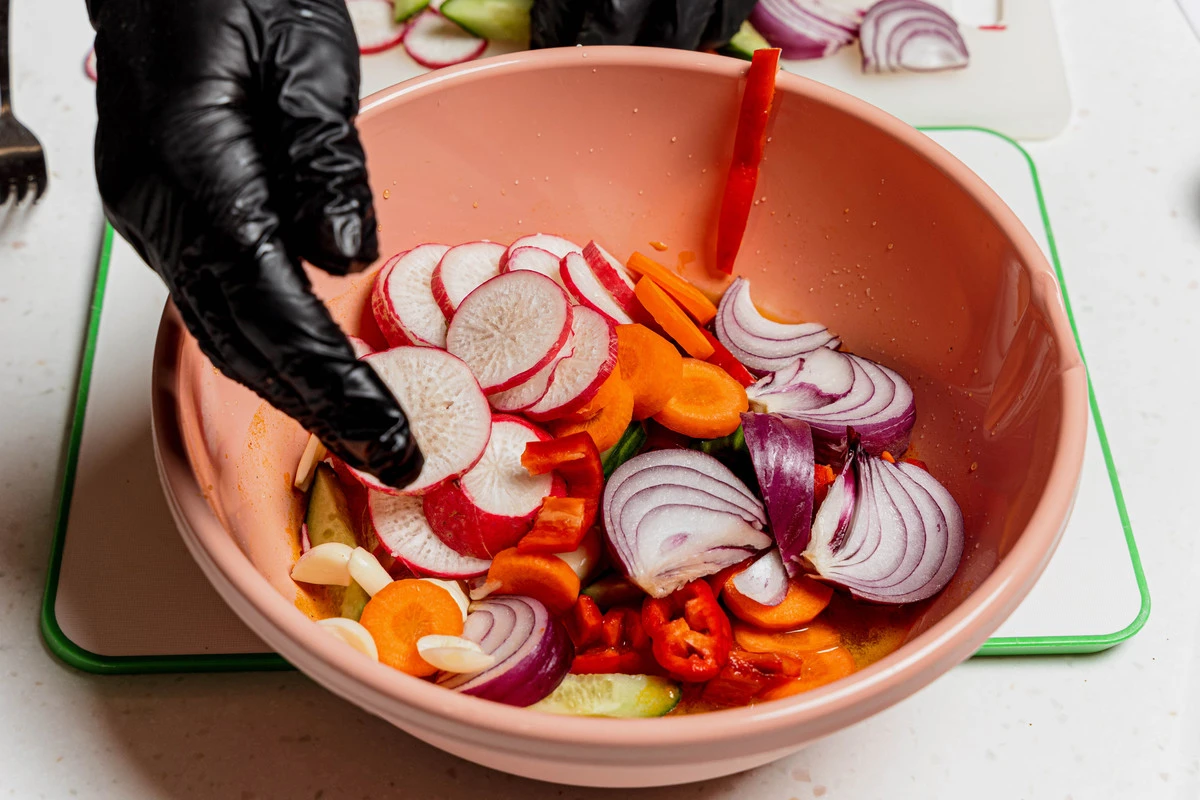 Оставьте овощи в холодильнике на сутки, время от времени встряхивая контейнер или перемешивая овощи ложкой.