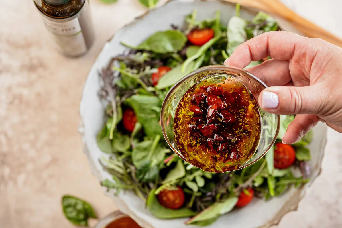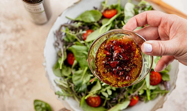 Яркая заправка для любого салата из свежих или печёных овощей и зелени.