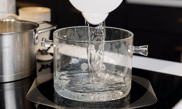 Налейте воду в кастрюльку или ковш.