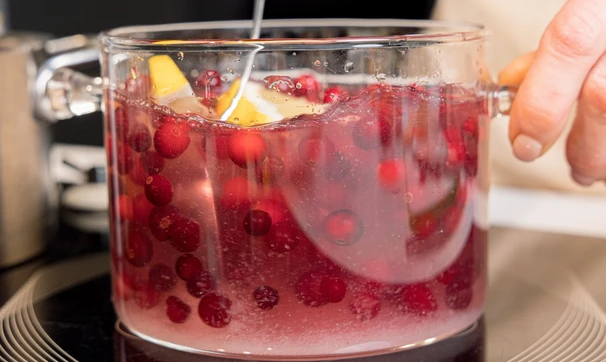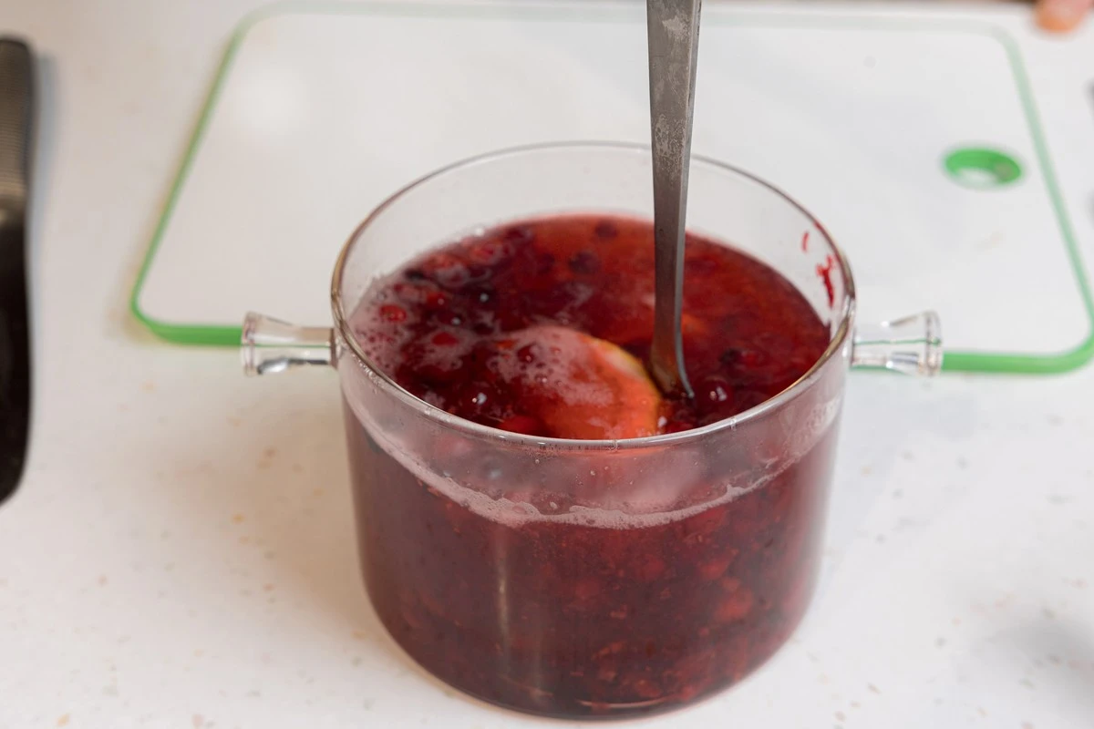 Потолките клюкву, чтобы сделать напиток ещё более насыщенным, по желанию можете процедить. Оставьте настаиваться до остывания или пейте сразу.