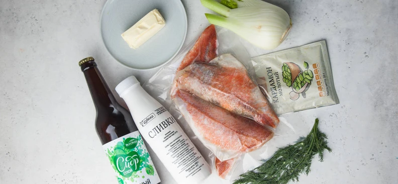 Морской окунь с фенхелем и яблочным сидром