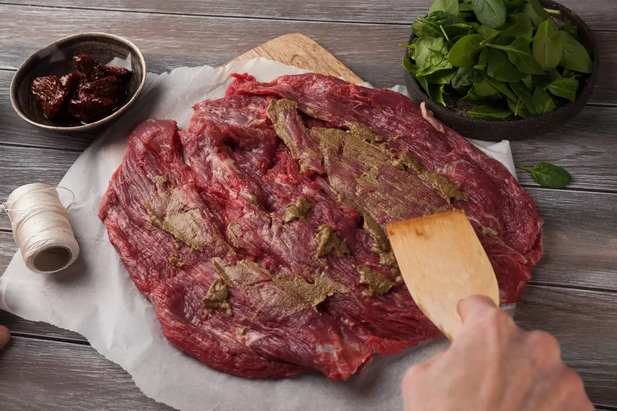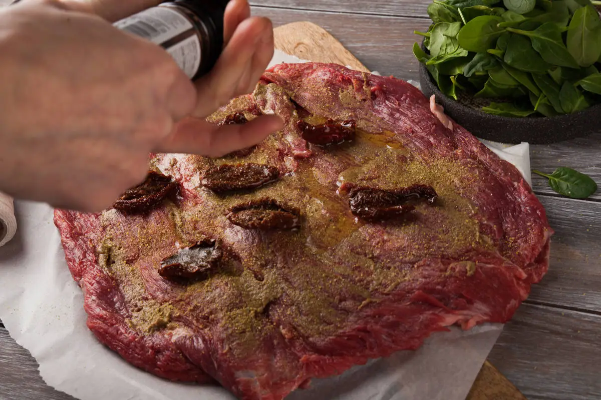 Мясной рулет с вялеными томатами и шпинатом, шаг 2/5