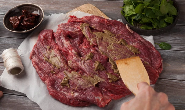 Мясной рулет с вялеными томатами и шпинатом, шаг 1/5