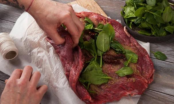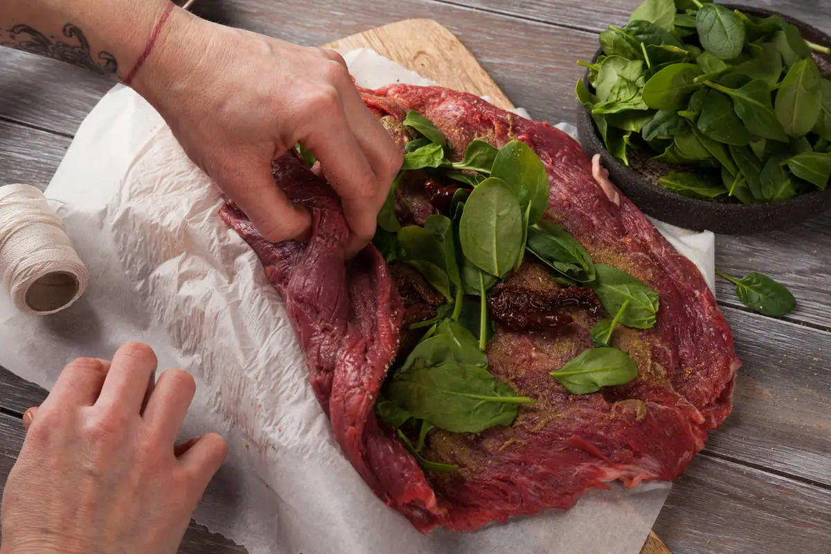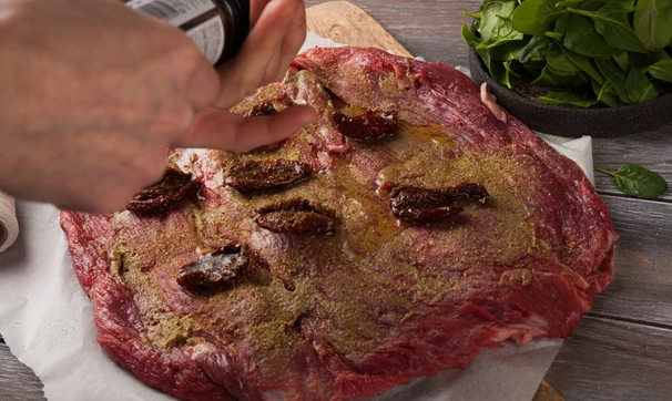 Рецепт «Мясной рулет с вялеными томатами и шпинатом»