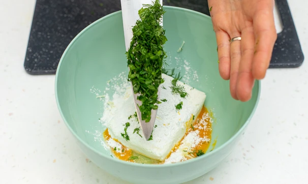 Сырники могут быть не только сладкими, но и солёными, с чесночком и ароматной зеленью. Мы положили стандартные укроп и петрушку, но можно также добавить немножко мяты, кинзы или зелёного лука. А в сезон обязательно попробуйте положить в такие сырники черемшу.