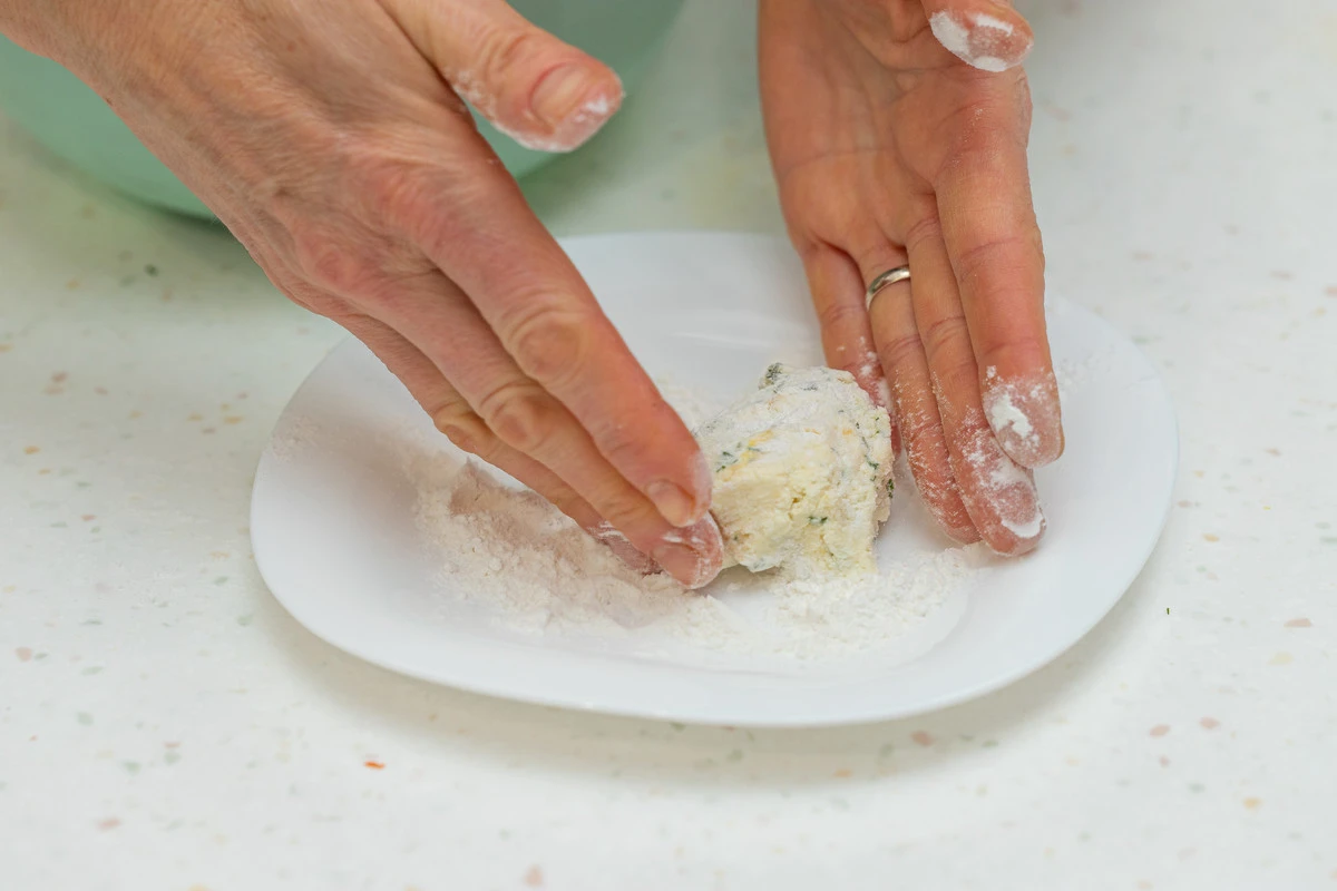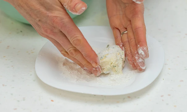Сформируйте сырники и обваляйте в рисовой муке.