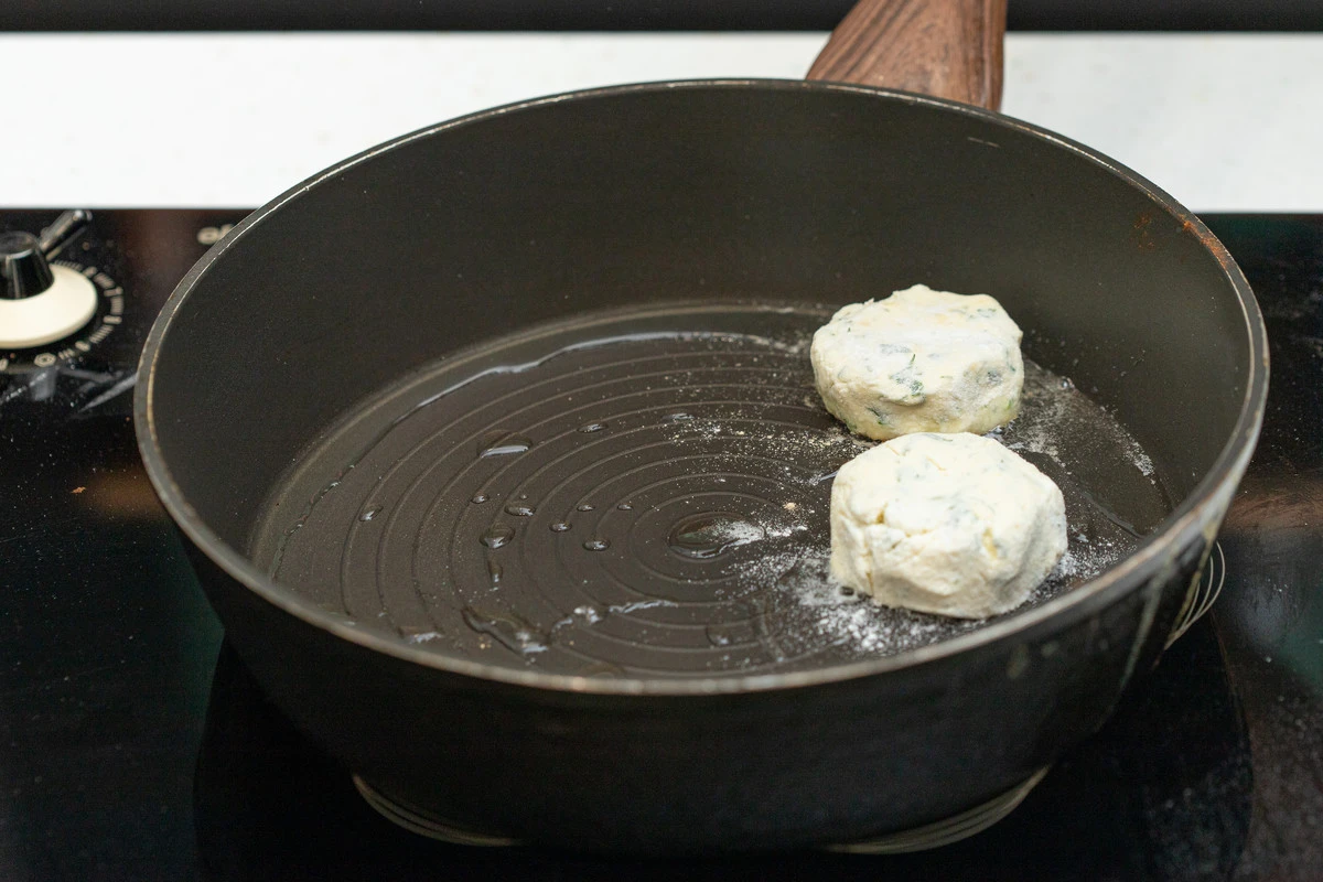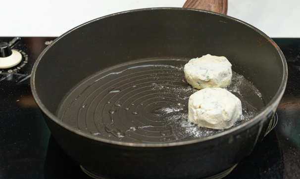 Обжарьте на среднем огне на растительном масле по 5-7 минут с каждой стороны, затем переверните ещё раз и подержите пару минут под крышкой.