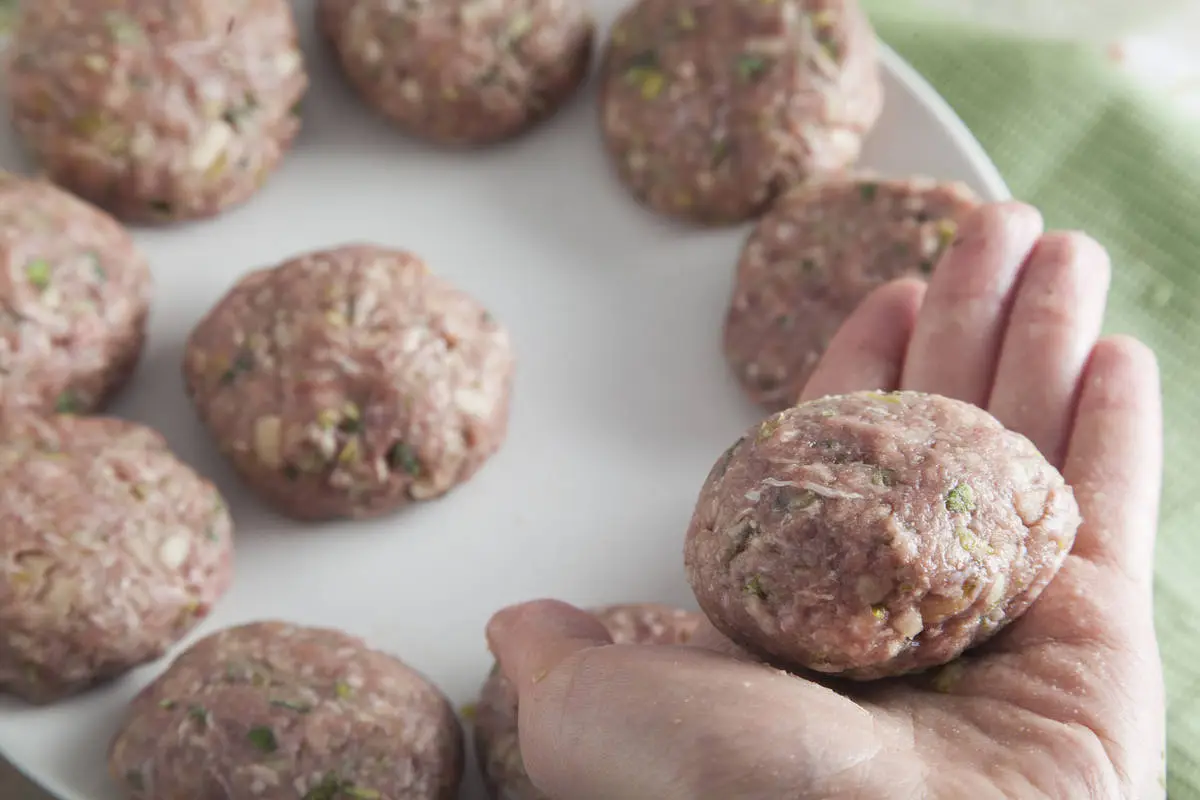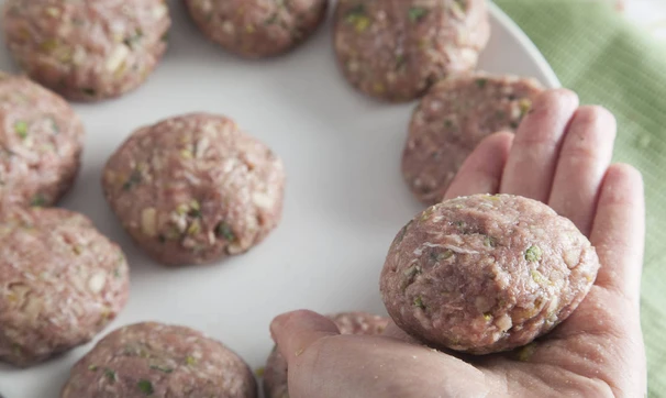 Добавление яблока делает эти котлетки из телячьего фарша особенно нежными, а с зеленью можно поэкспериментировать, к примеру добавить несколько листиков мяты!