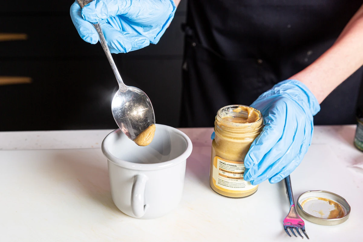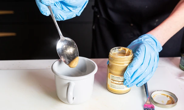 Для заправки смешайте масло, горчицу, мёд, сок лимона и кусочки анчоуса. Анчоусы можно заменить на филе кильки пряного посола в масле.