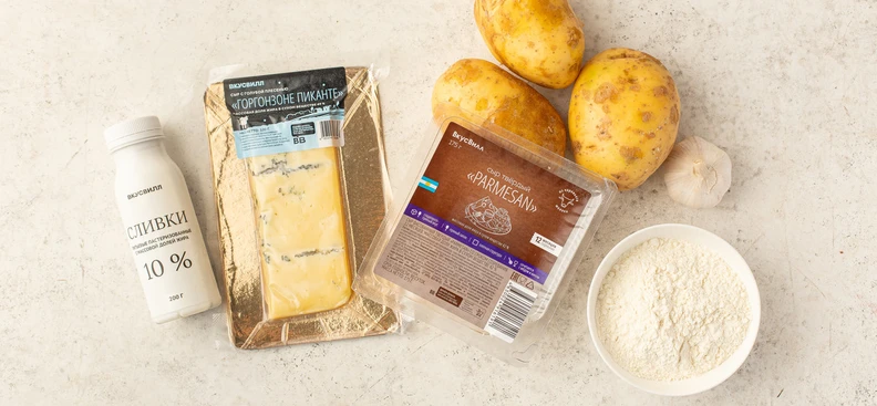 В рецепте используются товары из категорий: Сыры; Молочные продукты, яйцо; Масла, соусы, специи, сахар и соль; Овощи, фрукты, ягоды, зелень; Крупы, макароны, мука