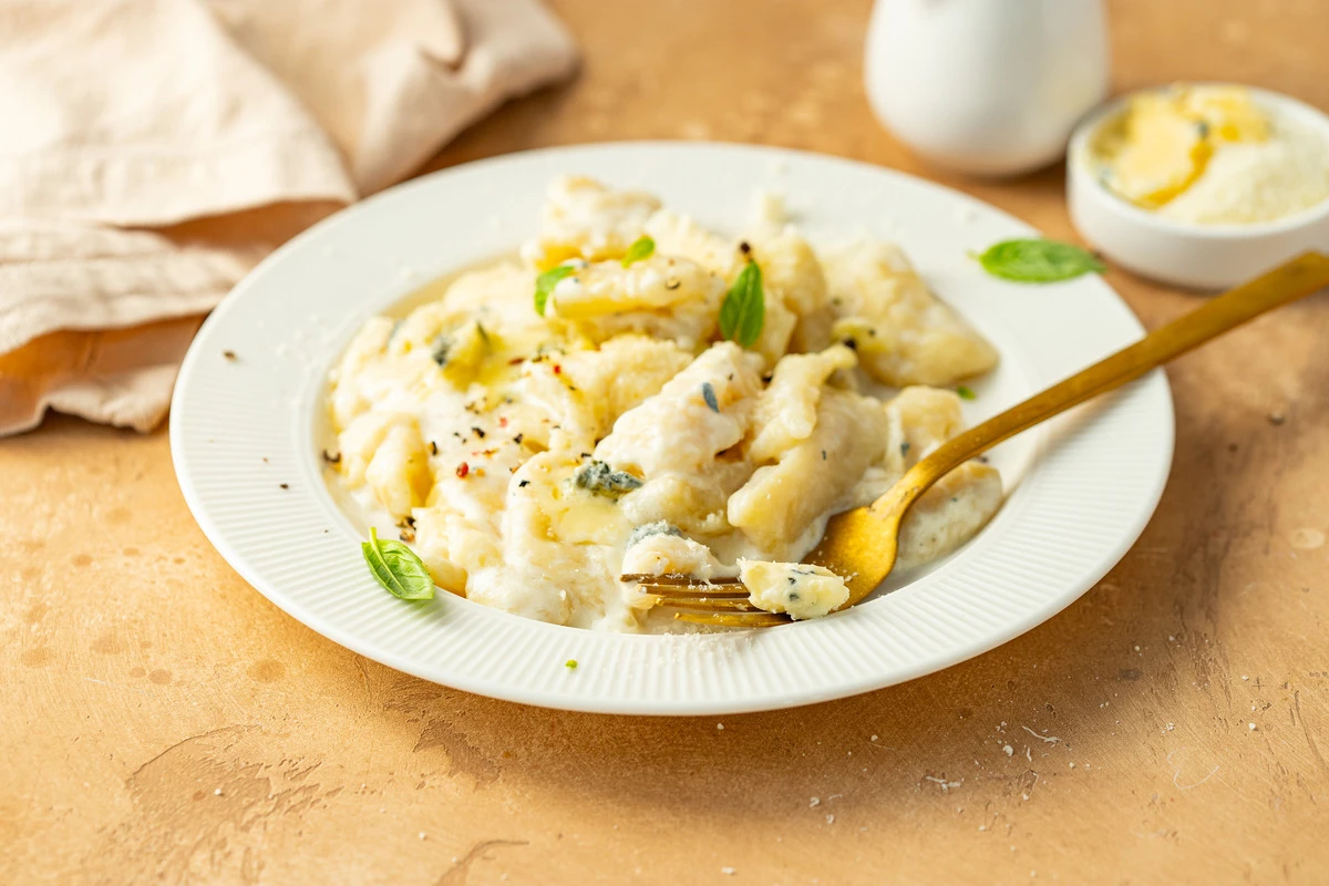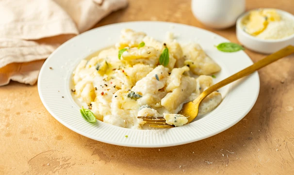 Ньокки — популярное блюдо итальянской кухни. Это небольшие клёцки, как правило, овальной формы, которые обычно готовят из отварного картофеля. Попробуйте наш рецепт — с двумя видами сыра они особенно вкусны. Также этот вариант ньокки подходит тем, кто не ест яйца.