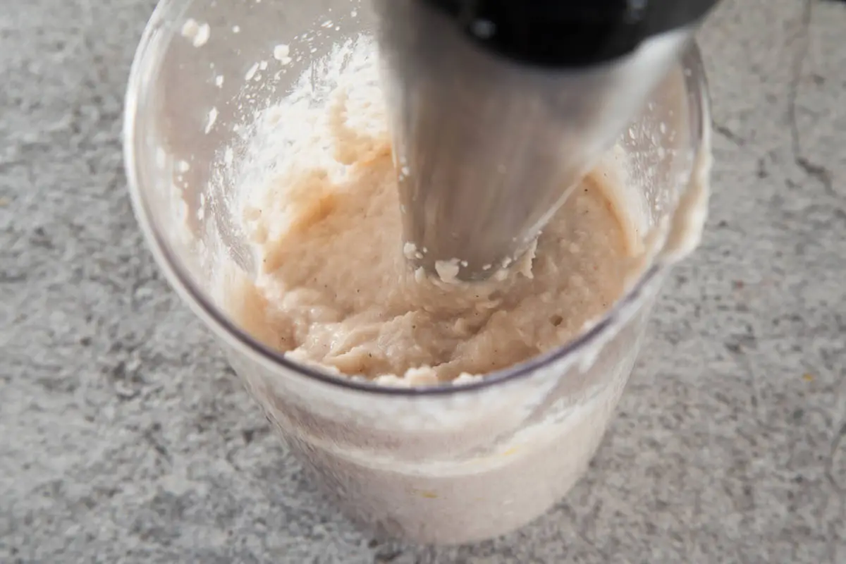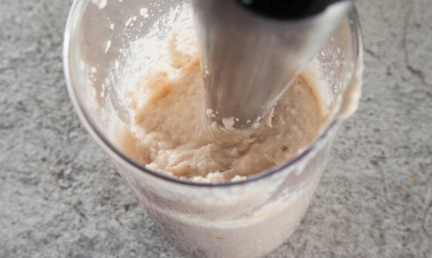 Для соуса "бешамель" сварите фасоль, предварительно замочив на ночь. Можно использовать уже готовую консервированную. В блендере измельчите сваренную фасоль, мускатный орех, лимонный сок, кокосовое масло и соль. При необходимости добавьте воду из-под фасоли. Должен получиться однородный белый соус.