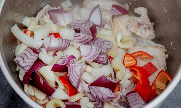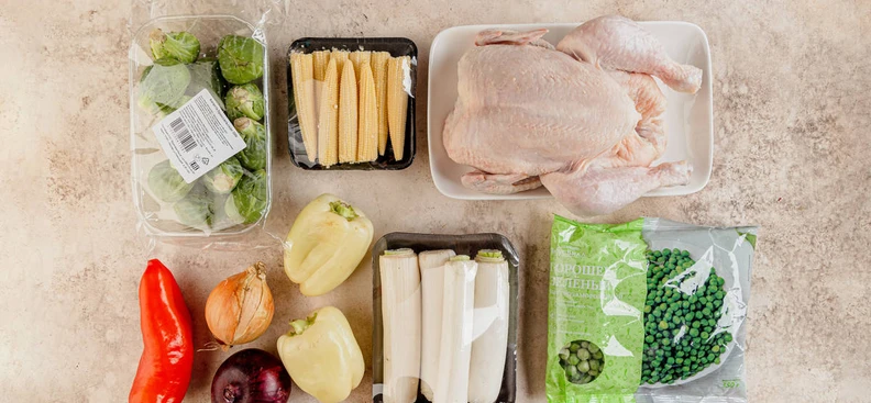 В рецепте используются товары из категорий: Овощи, фрукты, ягоды, зелень; Мясо, птица; Замороженные продукты
