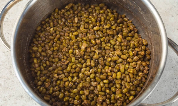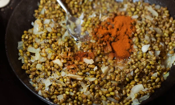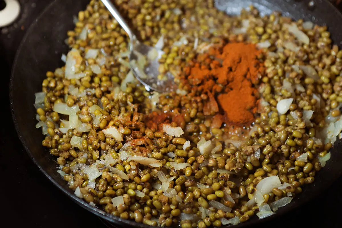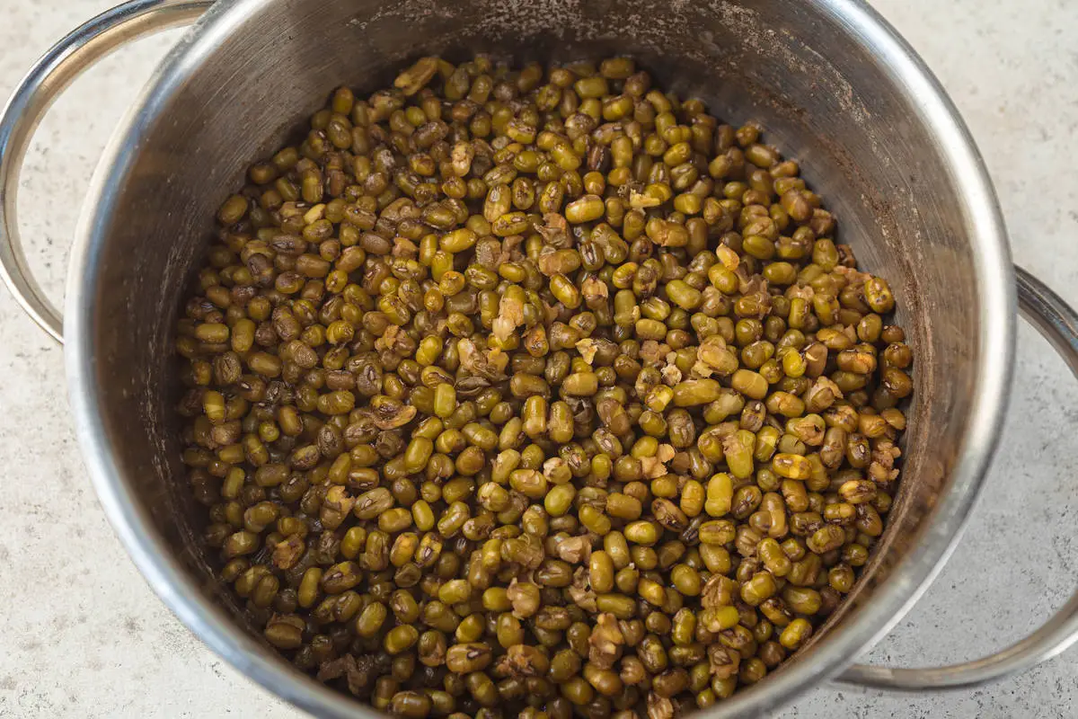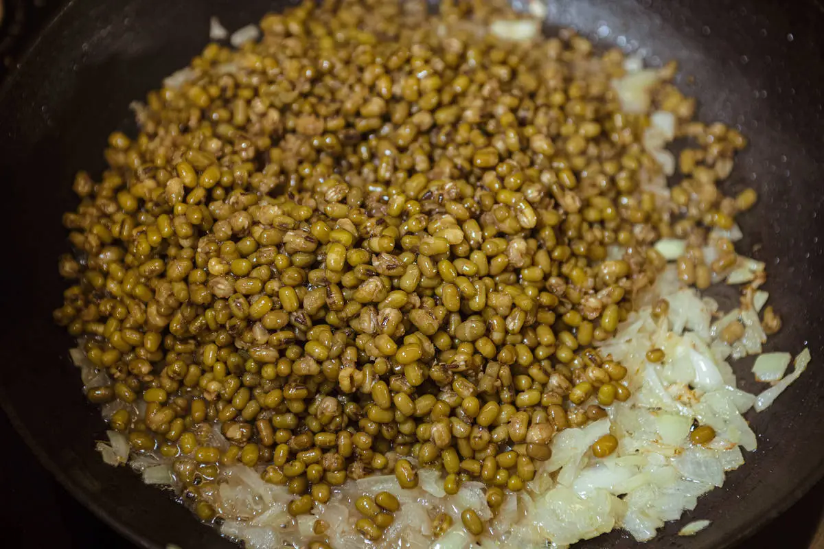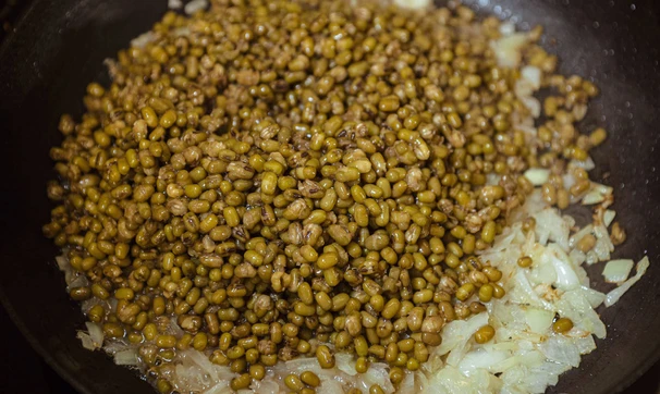Маш предварительно замочите в большом количестве воды на 5-8 часов (можно оставить на ночь). Это нужно для того, чтобы фасоль быстрее сварилась и лучше усваивалась организмом. Промойте маш и варите до готовности, не добавляя соль, примерно 30-40 минут. Слейте лишнюю воду.