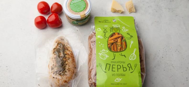 Паста из полбы с песто и куриным филе