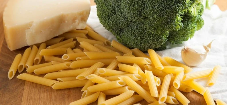 В бурно кипящую воду всыпьте пасту, перемешайте, за 1-2 минуты до готовности добавьте брокколи, доварите до готовности пасты аль-денте, слейте воду.