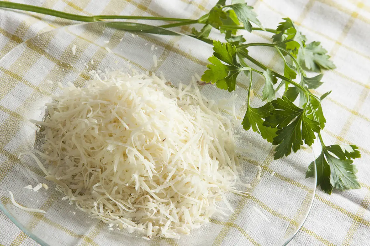 Кипящую воду подсолите и забросьте туда пасту. Пока макароны варятся, натрите сыр на мелкой терке и порубите петрушку, и мелко нарежьте чеснок.