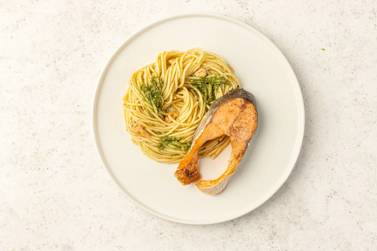 Паста с песто и форелью