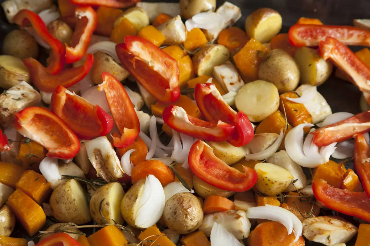 К главному праздничному блюду, будь то мясо, утка, гусь или курица, обязательно нужен гарнир. Попробуйте вот такие разноцветные печеные овощи, выглядит нарядно, готовится легко, в конце концов, это просто очень вкусно!