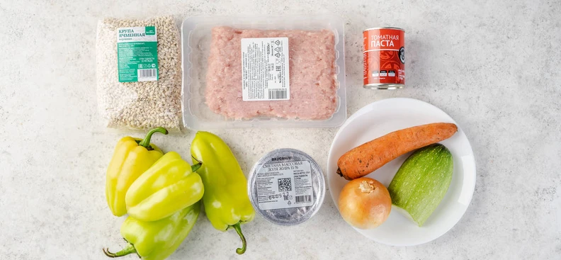 В рецепте используются товары из категорий: Овощи, фрукты, ягоды, зелень; Масла, соусы, специи, сахар и соль; Крупы, макароны, мука; Мясо, птица; Молочные продукты, яйцо