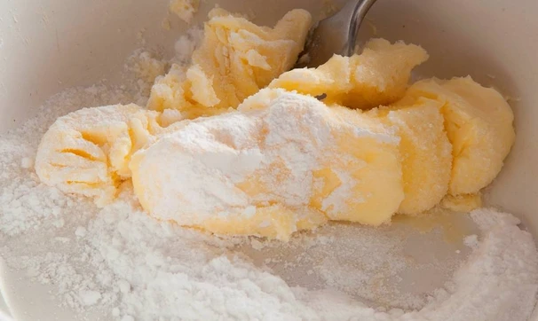 Размягченное при комнатной температуре масло разотрите вилкой с сахарной пудрой.