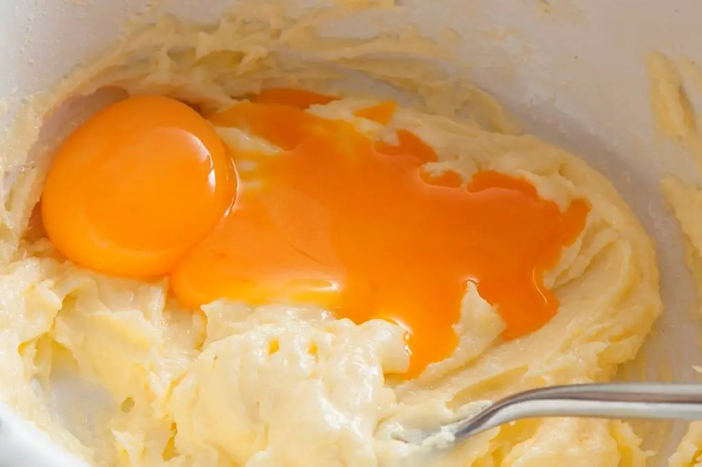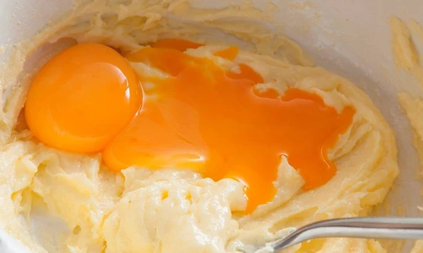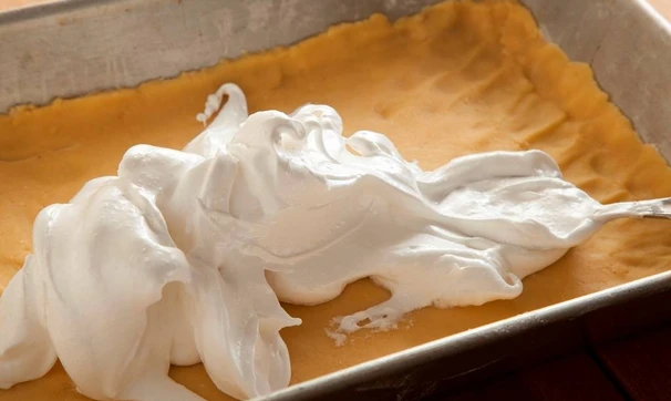 Аккуратно разбейте яйца и отделите белки от желтков, желтки добавьте к маслу, перемешайте, просейте муку, вилкой замесите тесто, не увлекайтесь, слишком долго месить не стоит. Тесто распределите руками по форме, смазанной маслом и посыпанной мукой, сформируйте бортики.