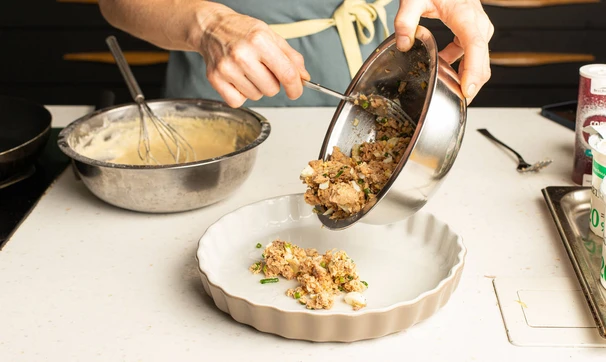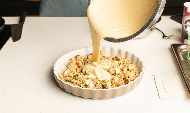 Получившимся тестом залейте начинку.