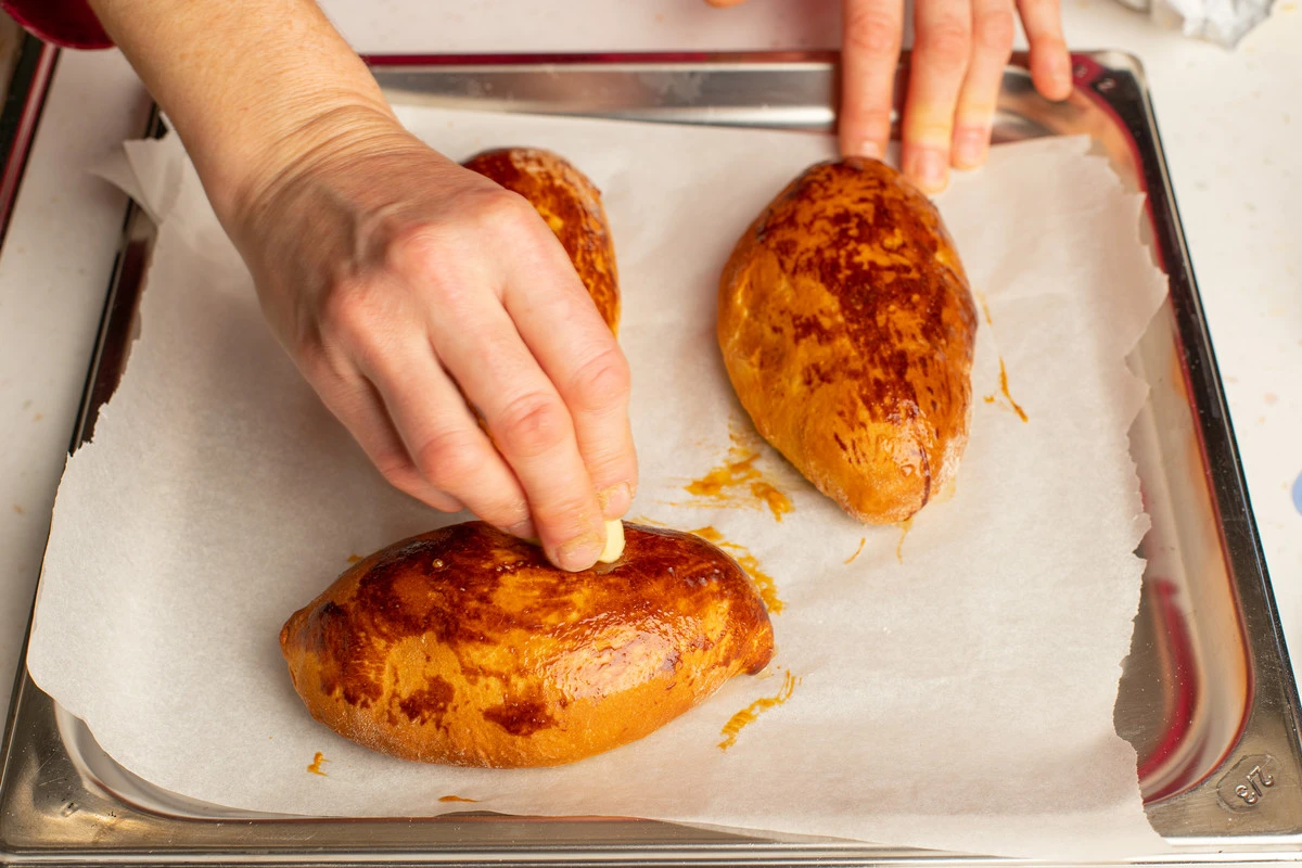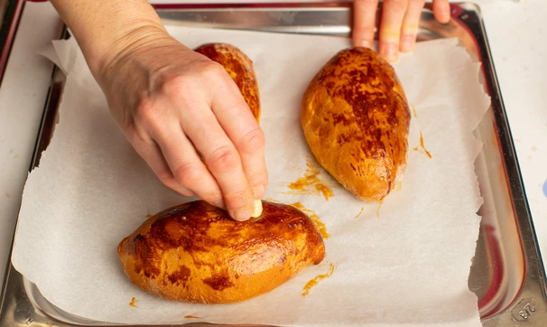 Для блеска уже готовые пирожки можно смазать кусочком сливочного масла.