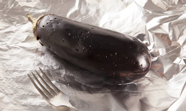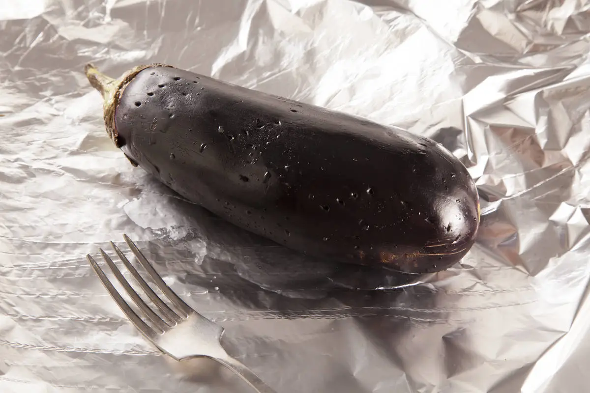 Баклажаны часто наколите вилкой, заверните в фольгу и запекайте в разогретой до 180 градусов духовке до мягкости (20-30 минут).