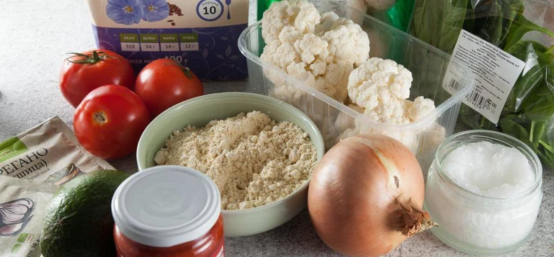 Пицца на основе из цветной капусты завоевала желудки зарубежных гурманов. В основном популярен вариант с использованием яиц и большого количества сыра. Но, согласитесь, он все равно остается довольно тяжелым для пищеварения. Наш вариант не содержит яиц, пшеничной муки и сыра.