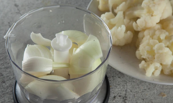 В блендере измельчите вместе с луком.