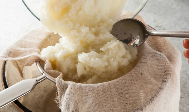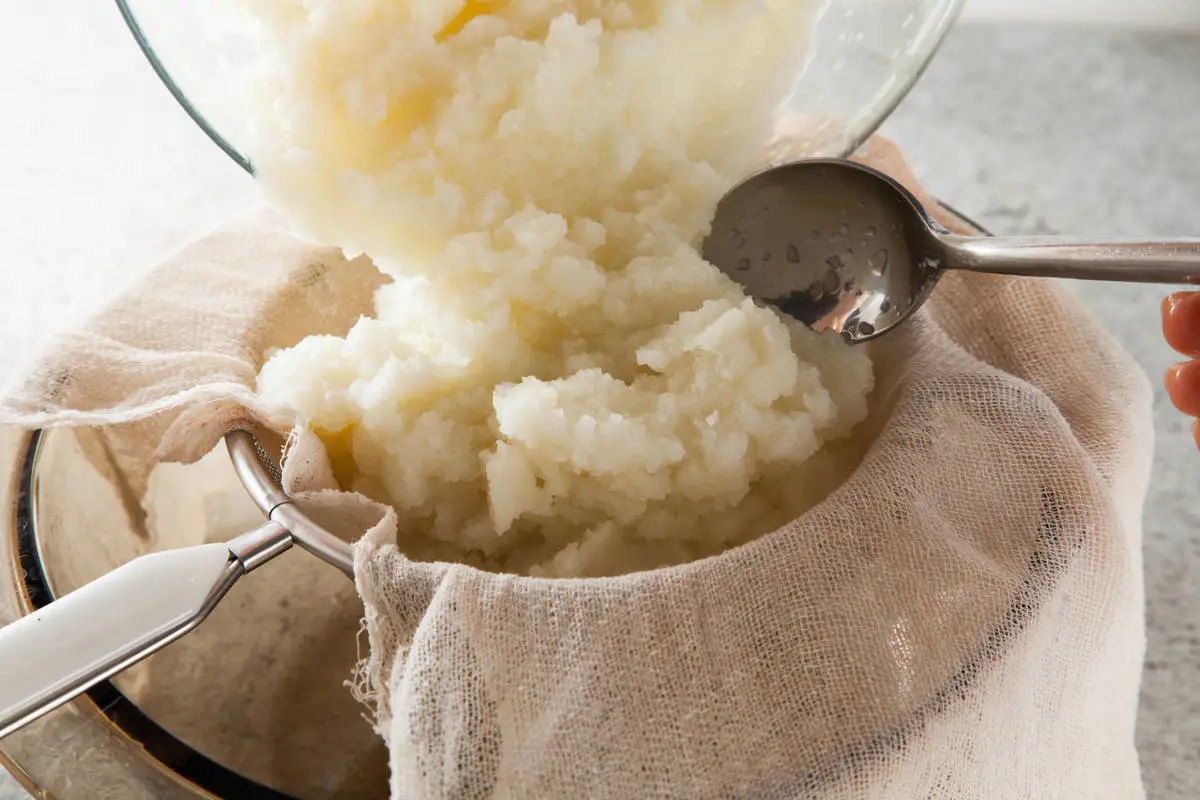Масса получится довольно водянистой. Ее надо как следует отжать через марлю. Если используете замороженную капусту, то процесс с варкой можно опустить. Просто разморозьте ее, а дальше измельчите в блендере с луком. Потом так же отожмите влагу.