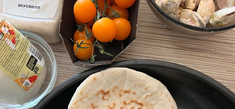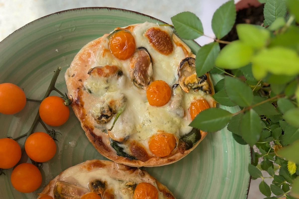 Пицца на пите с мидиями