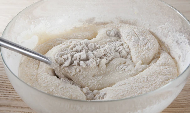 Все ингредиенты для блинов должны быть комнатной температуры. Яйца взбейте с солью до светлой пены, добавьте молоко, соль и сахар, перемешайте, всыпьте просеянную муку и хорошо размешайте.