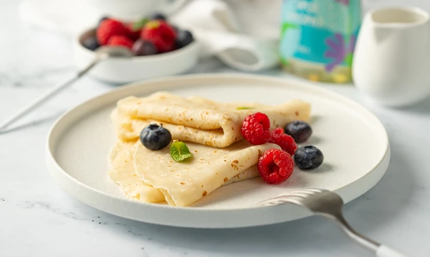 Подавайте с сиропом или мёдом и свежими ягодами.