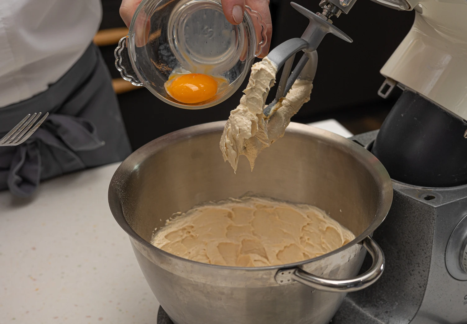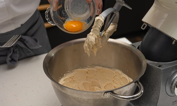 Добавьте желток, не переставая взбивать.