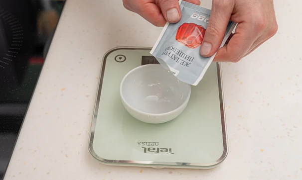 Набухший желатин смешайте с тёплым пюре.