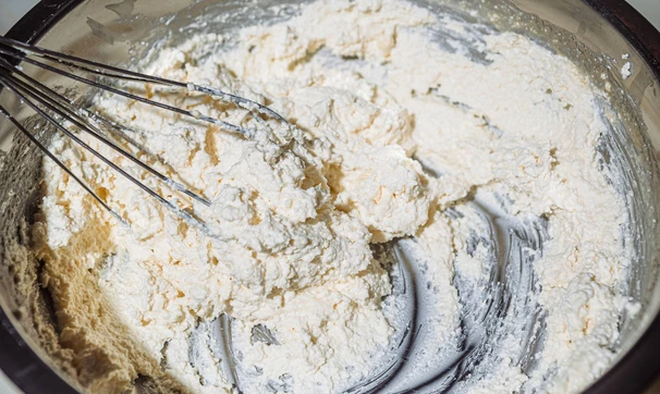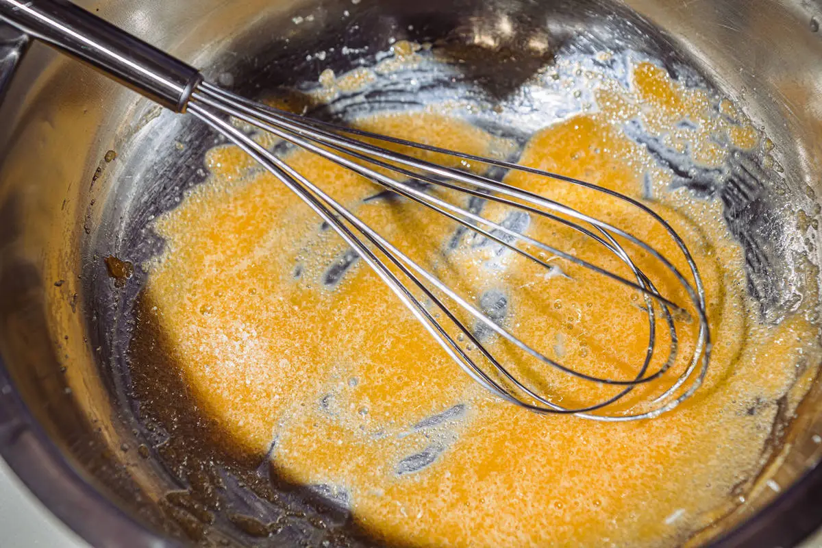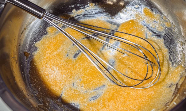 Взбейте желток с сахаром и солью.