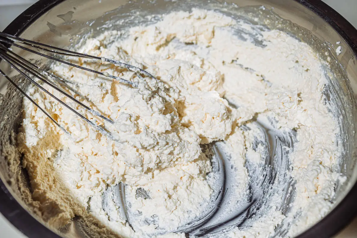 Добавьте творог и хорошо перемешайте.