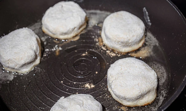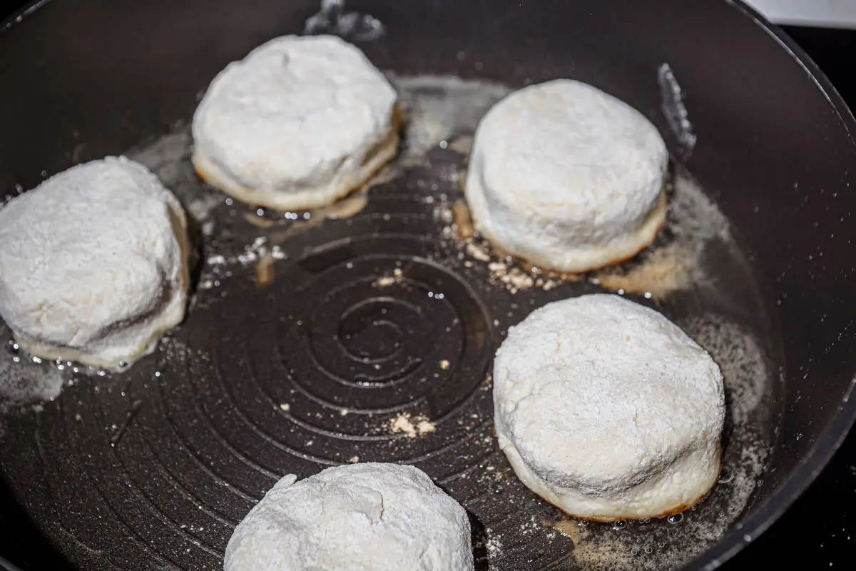 Обжарьте на растительном или топлёном масле на горячей сковороде с одной стороны.